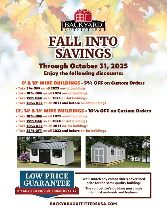 We are an Authorized Dealer of Custom Built Structures and we offer a wide variety of metal carports, utility carports, metal garages, barns and commercial buildings right here in Summersville, WV. Financing and Rent to Own Available! Save up to 18% off (depending on purchase price). Why pay more at the competition? Send us a message and connect with one of our friendly, knowledgeable Product Specialists today for your free estimate! Let our professional staff guide you through the entire process!
